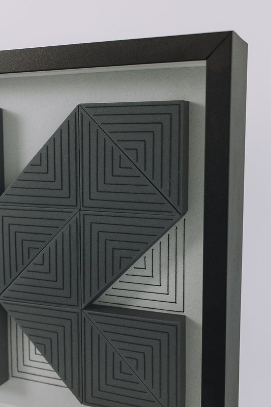 Adriana Ferraz é o nome por trás de obras que combinam leveza, rigor e afeto. Sua arte nasce do encontro entre o inesperado e o essencial, onde papel, linha e formas geométricas, materiais muitas vezes subestimados, ganham nova vida. Cada trabalho é uma tentativa de surpreender, de emocionar e de dar sentido à beleza das formas abstratas.