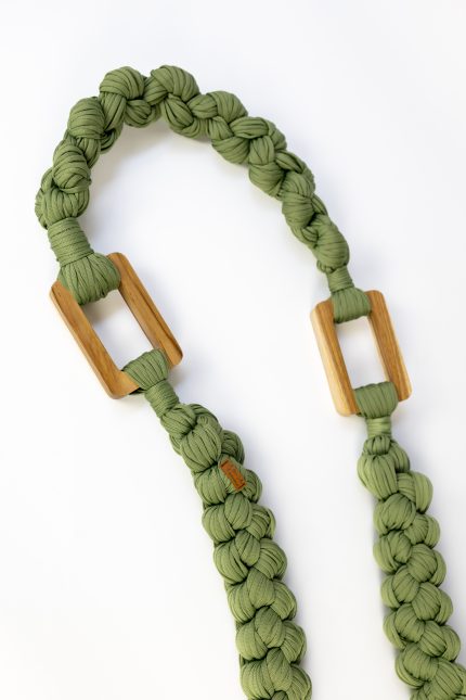 Cada elo deste colar, meticulosamente trabalhado, captura a essência do fio náutico — robusto e maleável, evocando a resistência e a serenidade do oceano. A harmonia dos cinco elos, cada um com aproximadamente 23 cm, forma uma tapeçaria de texturas que encanta tanto ao toque quanto à vista. A madeira adiciona charme e sofisticação.