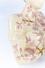 Um encontro entre mundos Brasil e Japão entrelaçados em forma e alma. A clássica namoradeira brasileira, ícone de nossas janelas, ganha novas cores e sentidos ao receber o delicado desenho das flores de cerejeira, símbolo do Japão e de uma viagem inesquecível da artista.