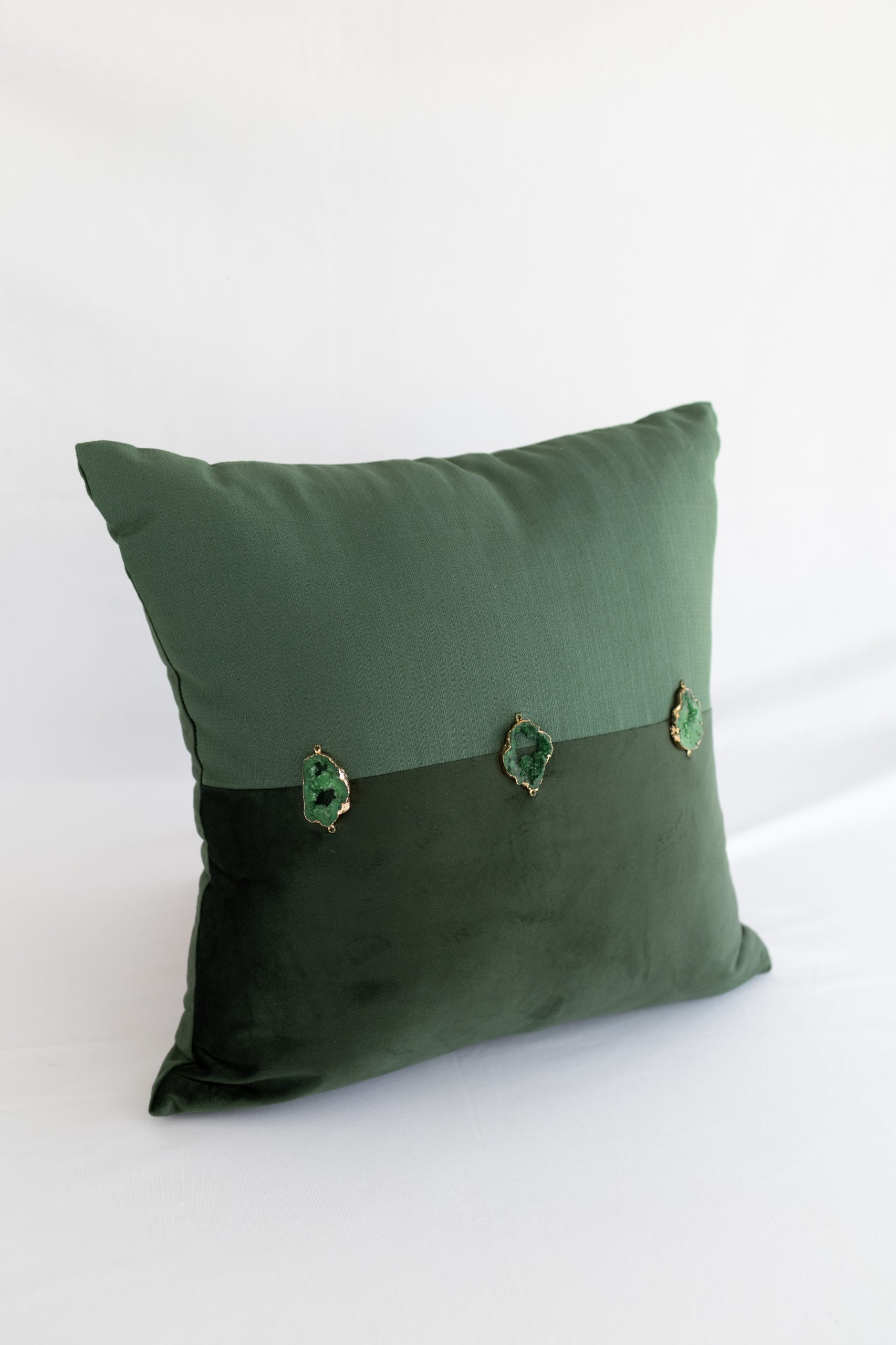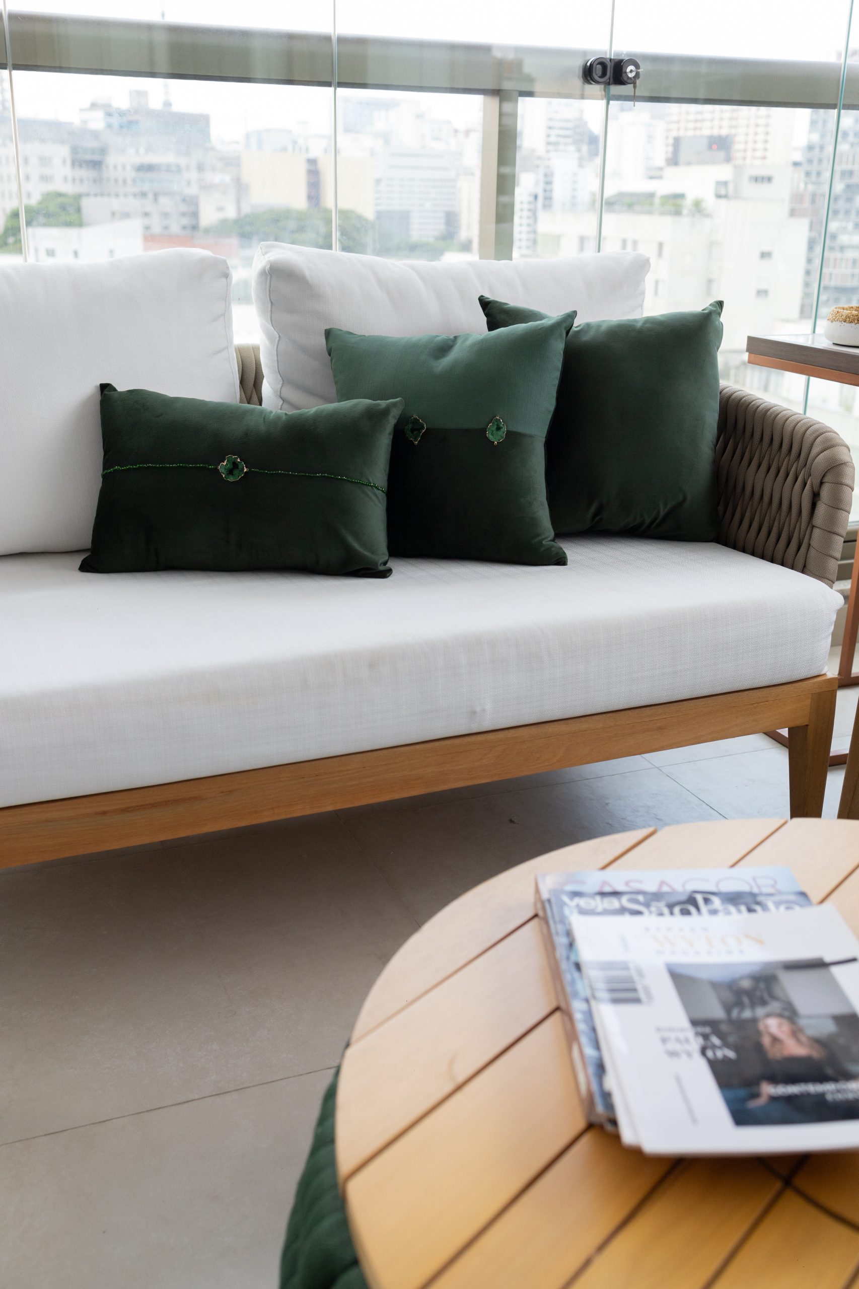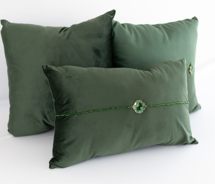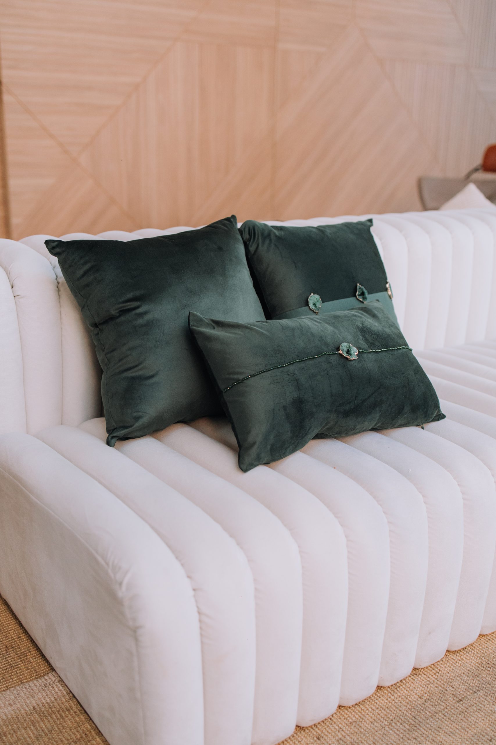 O conjunto de almofadas bordadas na cor verdes de Thais Sancler une o frescor da natureza à sofisticação do design artesanal. As duas almofadas bordadas com pedras naturais e a almofada lisa complementam-se harmoniosamente, formando uma composição que transforma qualquer ambiente em um espaço acolhedor e sereno.
