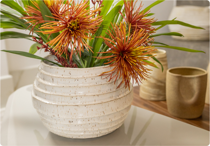 Feito com cerâmica reciclada, este vaso também reforça o compromisso com a  sustentabilidade e o respeito ao meio ambiente.  Deixe-se inspirar pela beleza e pela história desta peça e transforme seu espaço com um  toque de autenticidade e arte.