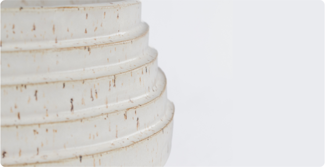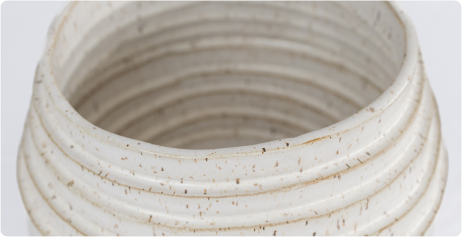 Apresentamos o vaso da série Tiras no tamanho médio. Uma criação única e inspiradora, confeccionada em cerâmica reciclada e com esmaltação completa. Esta peça é um  verdadeiro testemunho da arte artesanal, unindo técnica, paciência e um profundo respeito  pela matéria-prima.