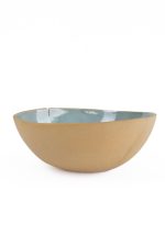 A esmaltação interna em azul claro não só adiciona uma beleza serena à peça, mas também proporciona uma superfície lisa e segura para alimentos. Este tom de azul, delicado e calmante, evoca a tranquilidade do céu e do mar, trazendo uma sensação de paz e harmonia para sua cozinha ou sala de jantar.