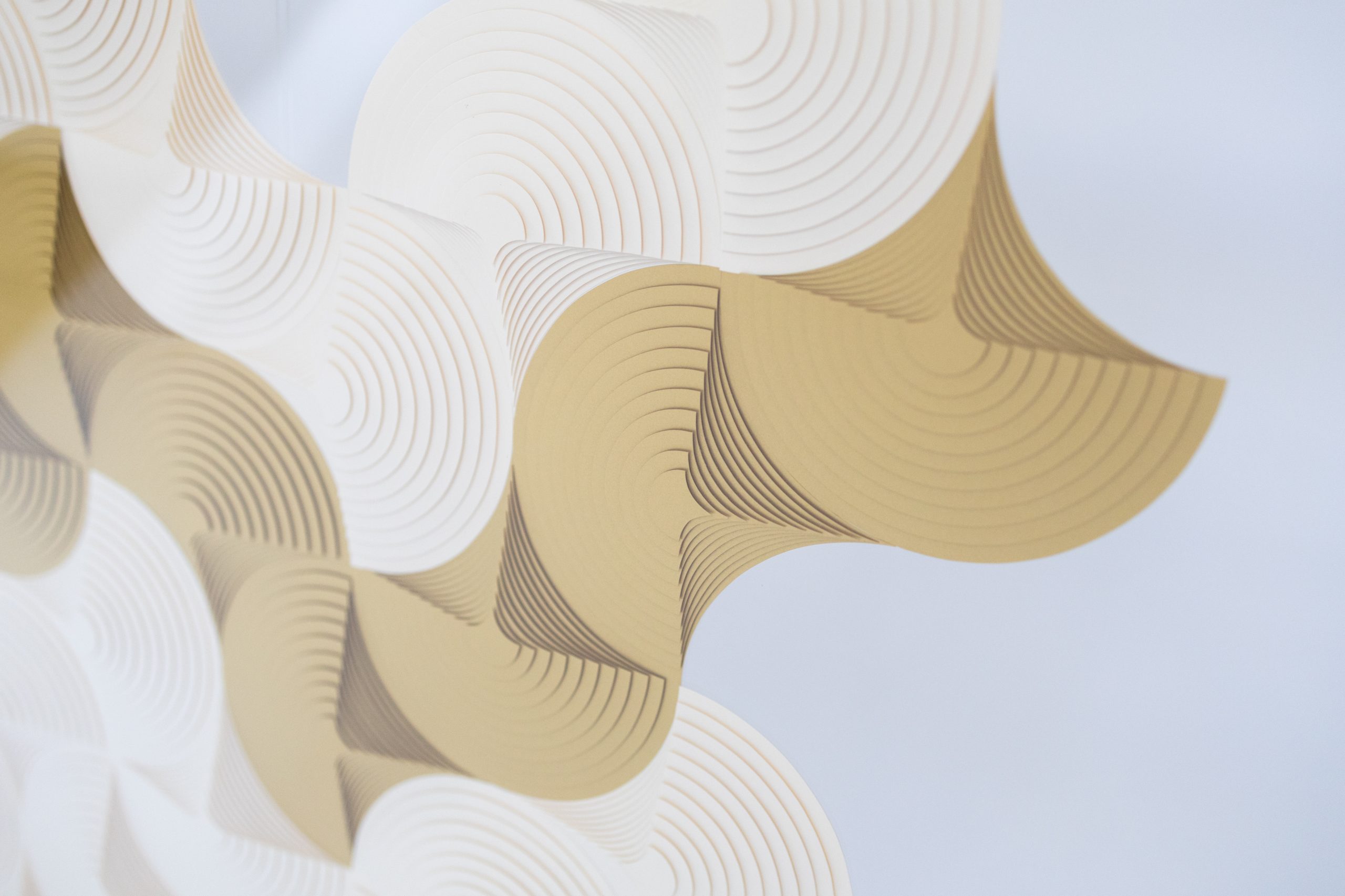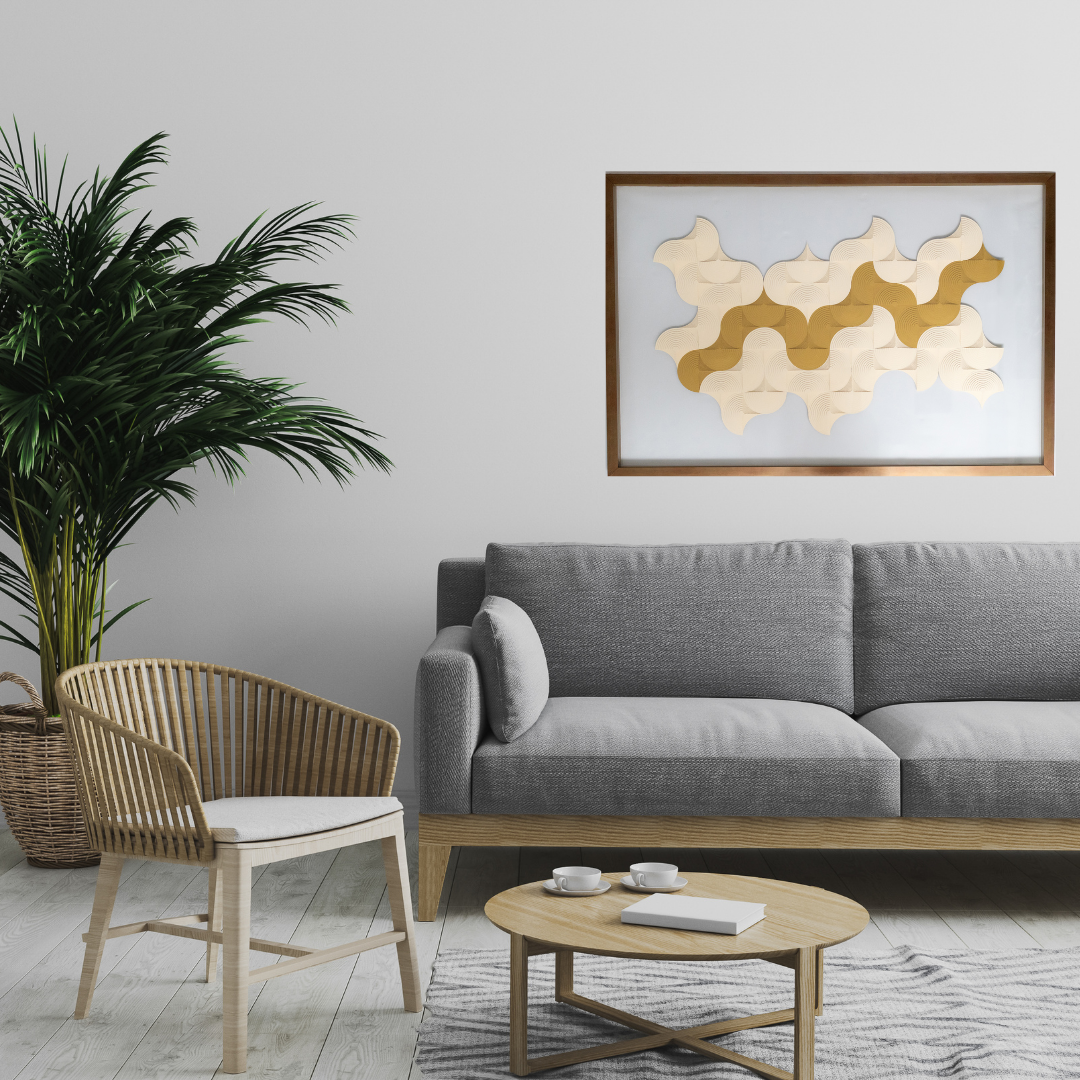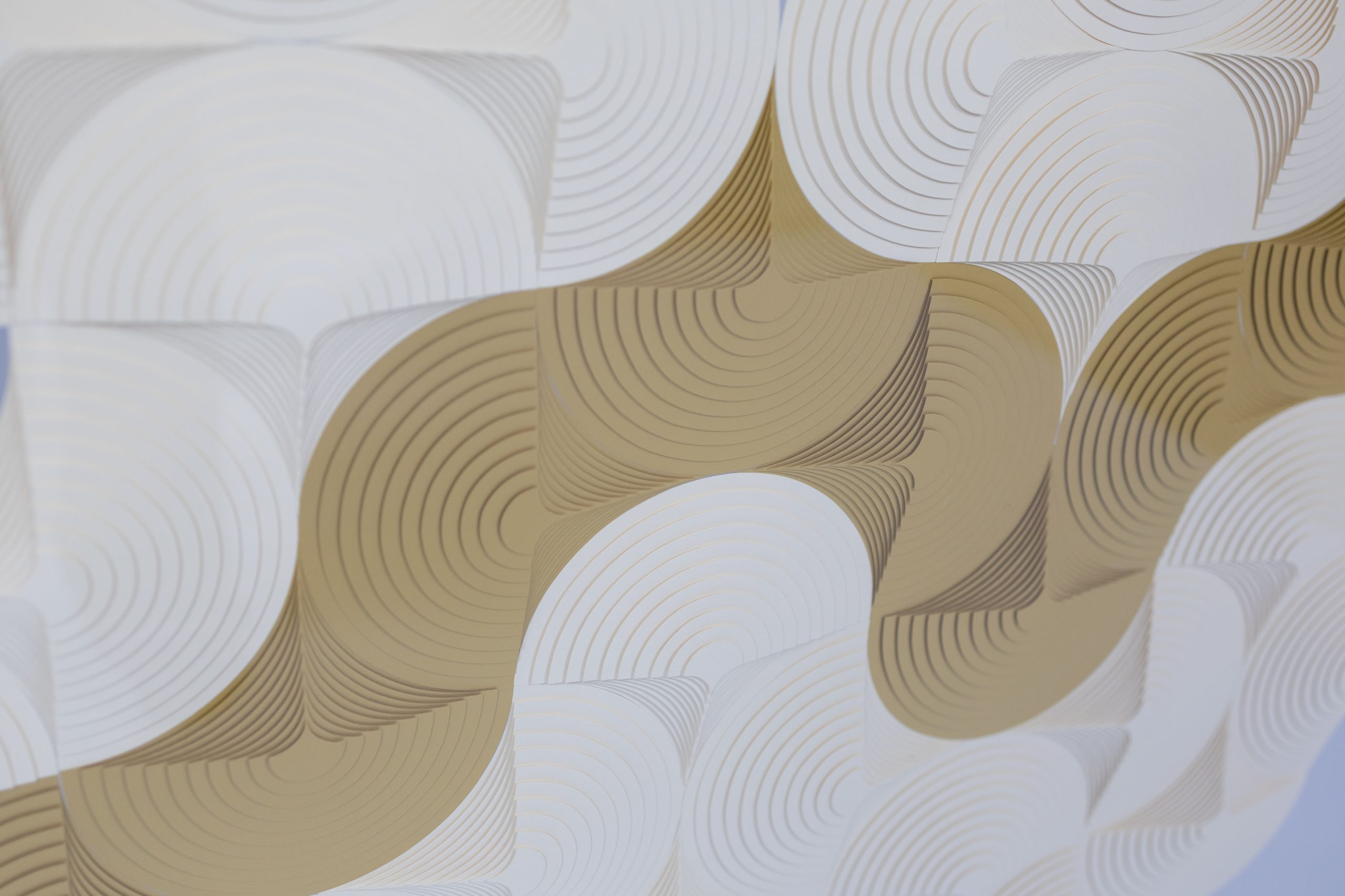 Em marfim e dourado, 52 formas se encontram, contíguas, como passos silenciosos em direção ao centro. A obra evoca o caminho individual que cada um percorre — ainda que inseridos em contextos distintos, seguimos uma trilha única, íntima, que pulsa no ritmo da nossa essência.