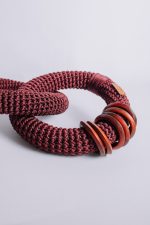 Dois elos em crochê que se entrelaçam como esculturas suaves, criando uma peça que une textura, forma e afeto. Feito à mão com fios resistentes e delicados, esse colar de mesa traz a leveza do trabalho manual e a força simbólica das conexões.
