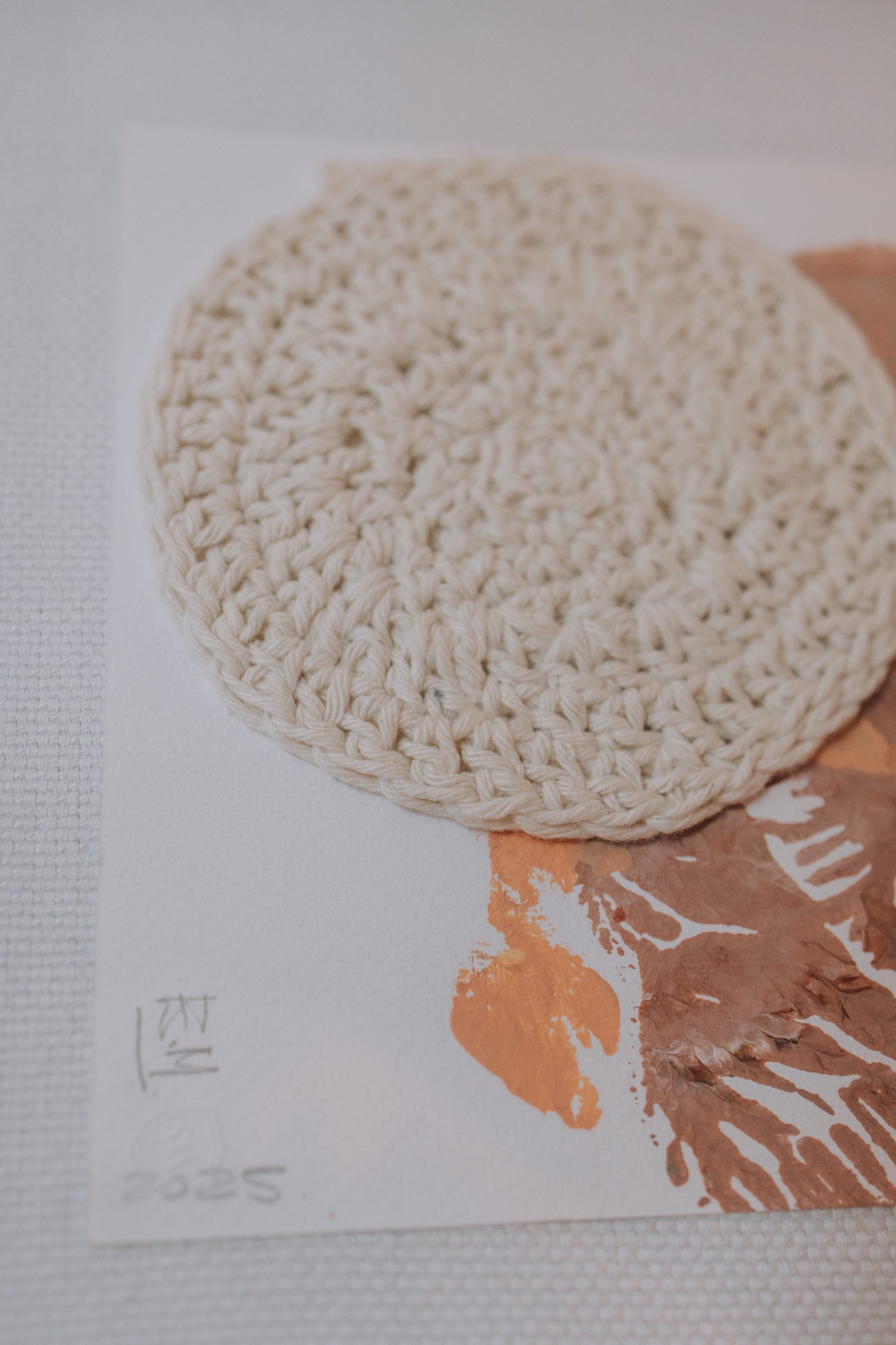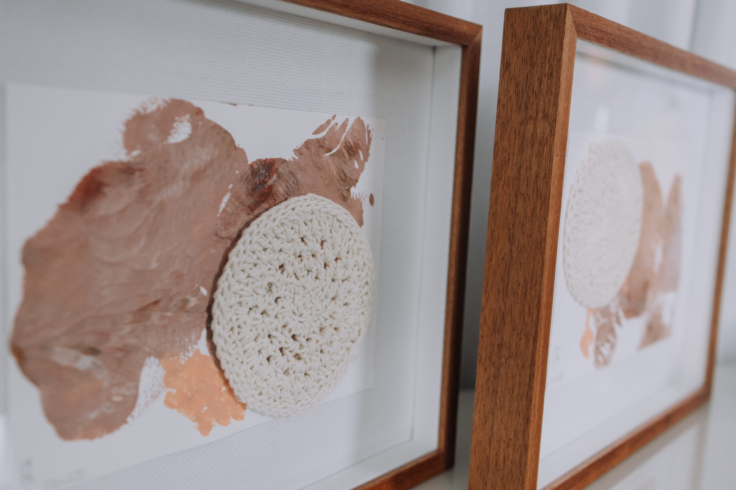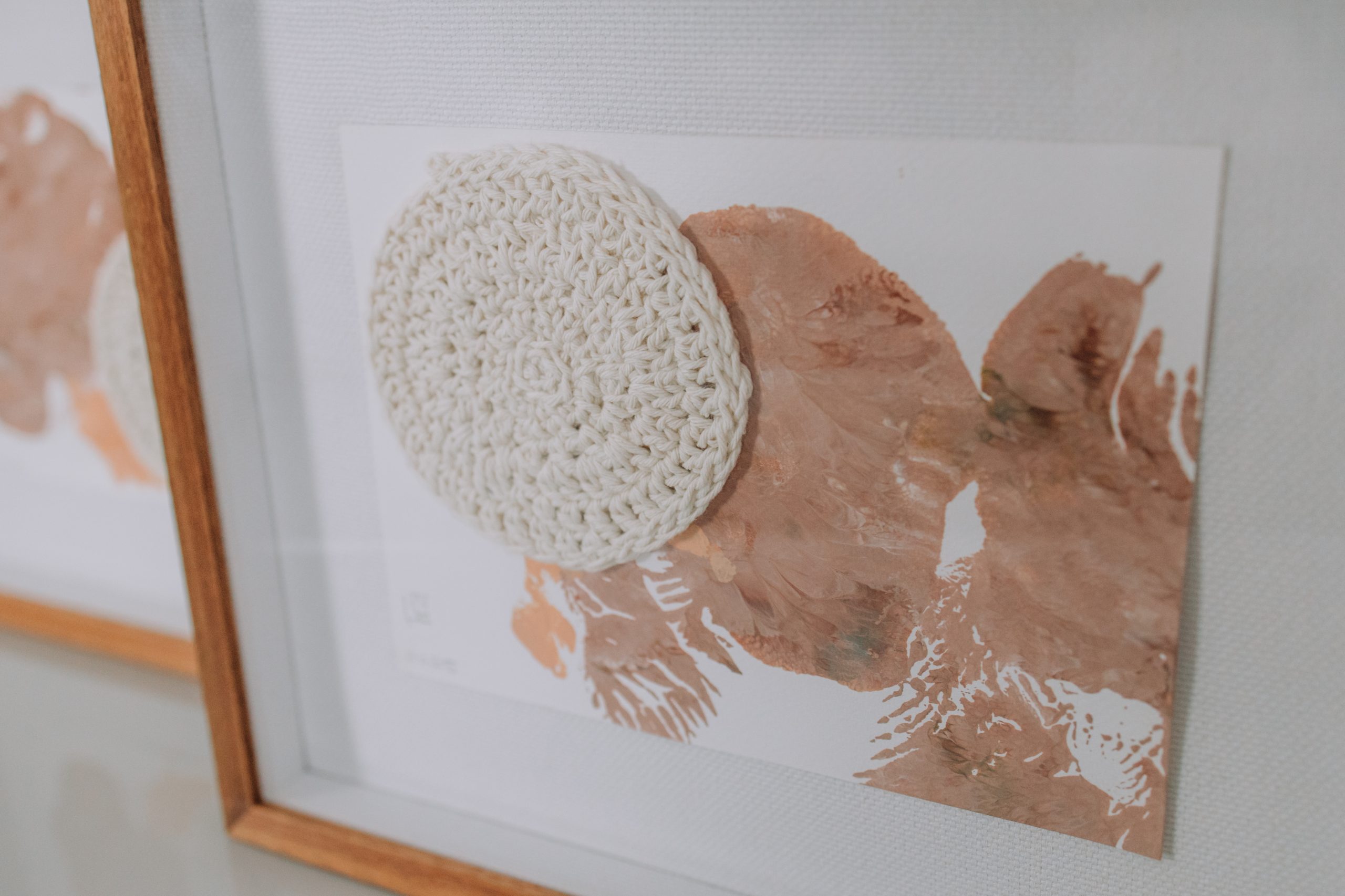 Nesta obra, Érika entrelaça passado e presente, delicadeza e expressão. “Mandalas” nasce do encontro entre as memórias afetivas do crochê feito à mão — inspirado pelas mulheres de sua família — e a linguagem contemporânea da pintura abstrata em papel
