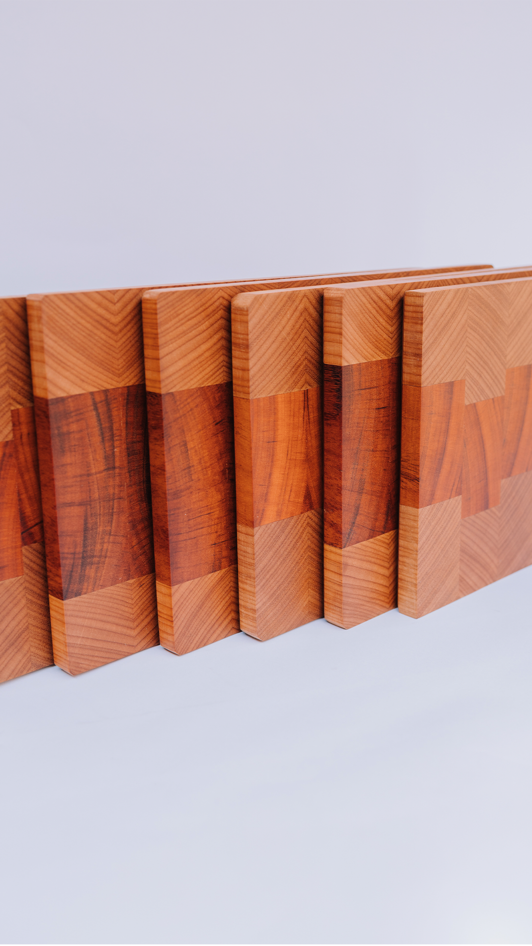 Em suas butcher blocks, o corte revela a alma do tronco: o end grain, ou corte de