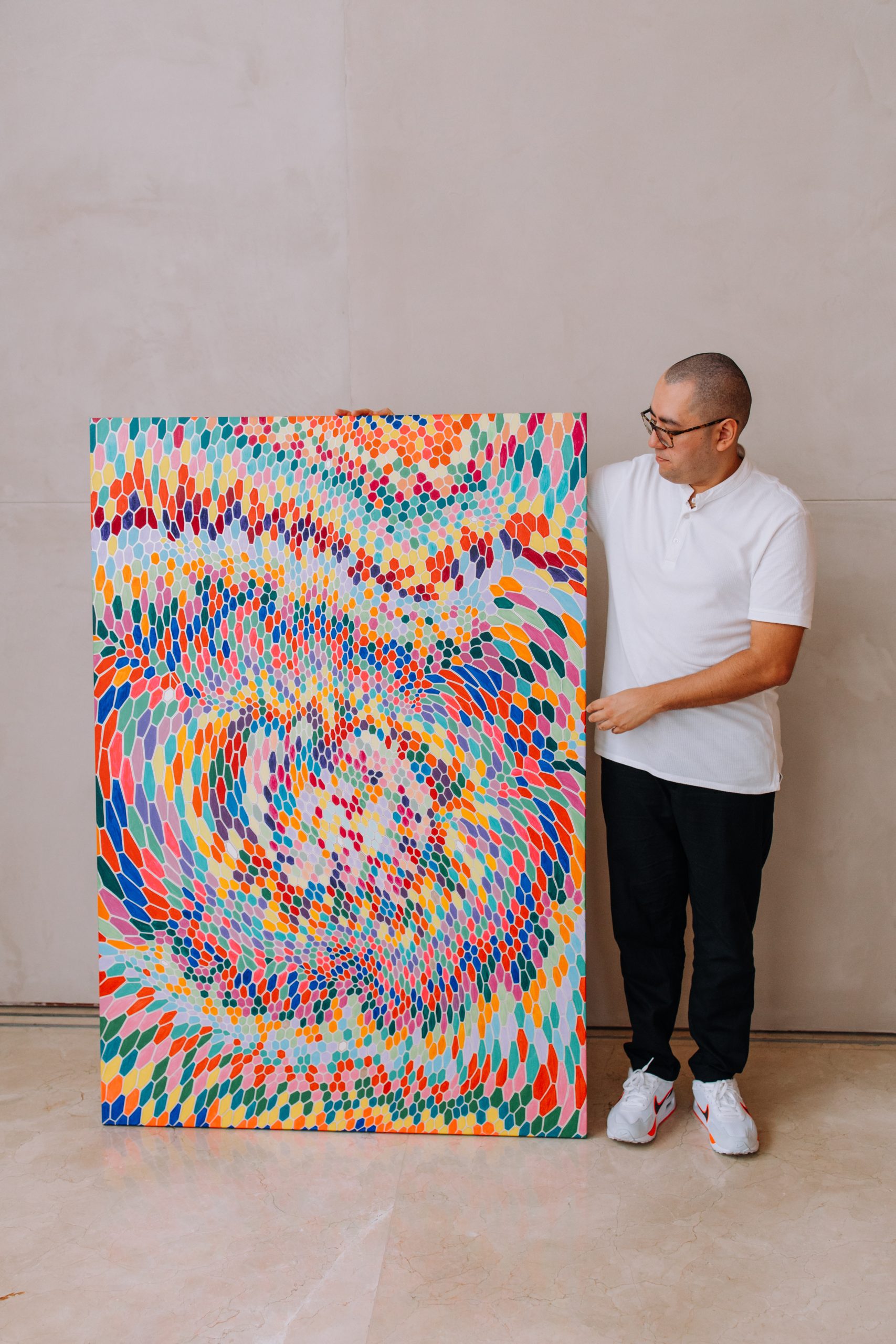 Paulo Kurazumi, nascido em 1988 em São Bernardo do Campo, é um artista cujas obras são imersas em uma profunda conexão entre arte, yoga e meditação. Com uma pós-graduação em História da Arte pela FAAP, ele encontrou na pintura e no desenho um meio único de explorar os estados físicos e espirituais dos objetos. Suas composições, com espirais e serpentes sem cabeça, envolvem o espectador em uma dança de formas e cores que se entrelaçam e se fundem, criando um campo de movimento contínuo.