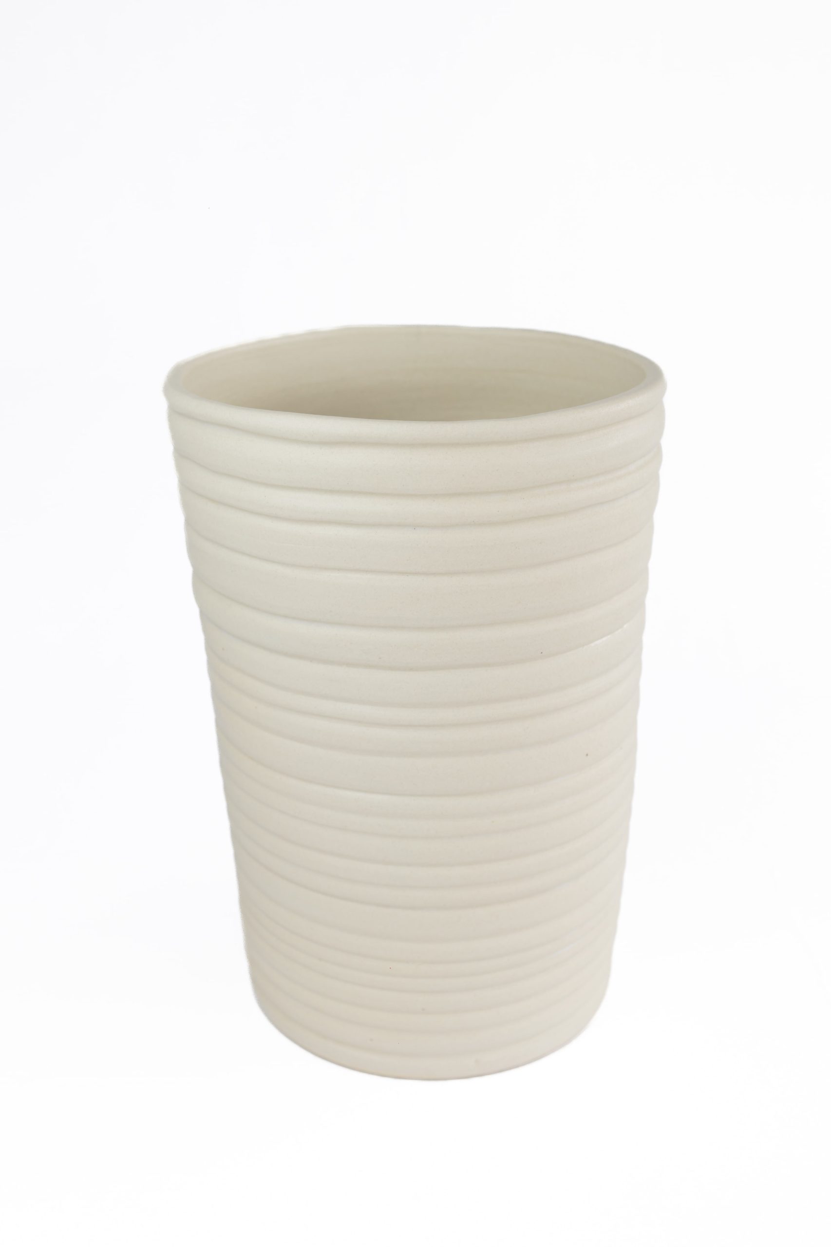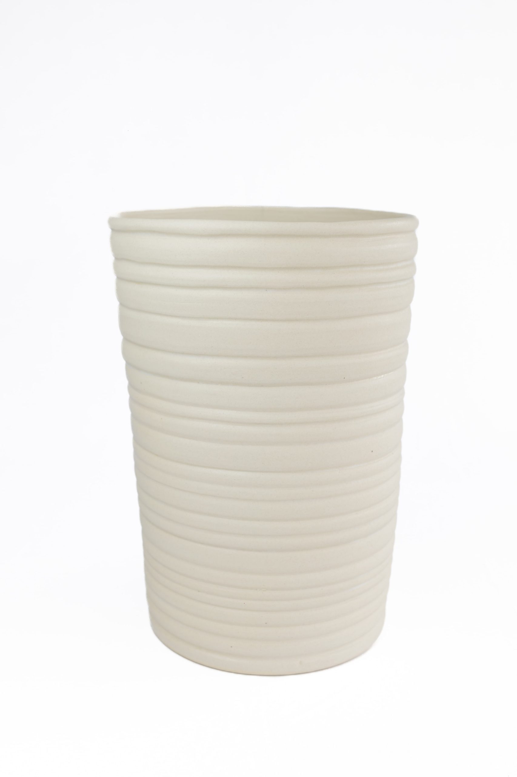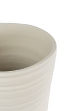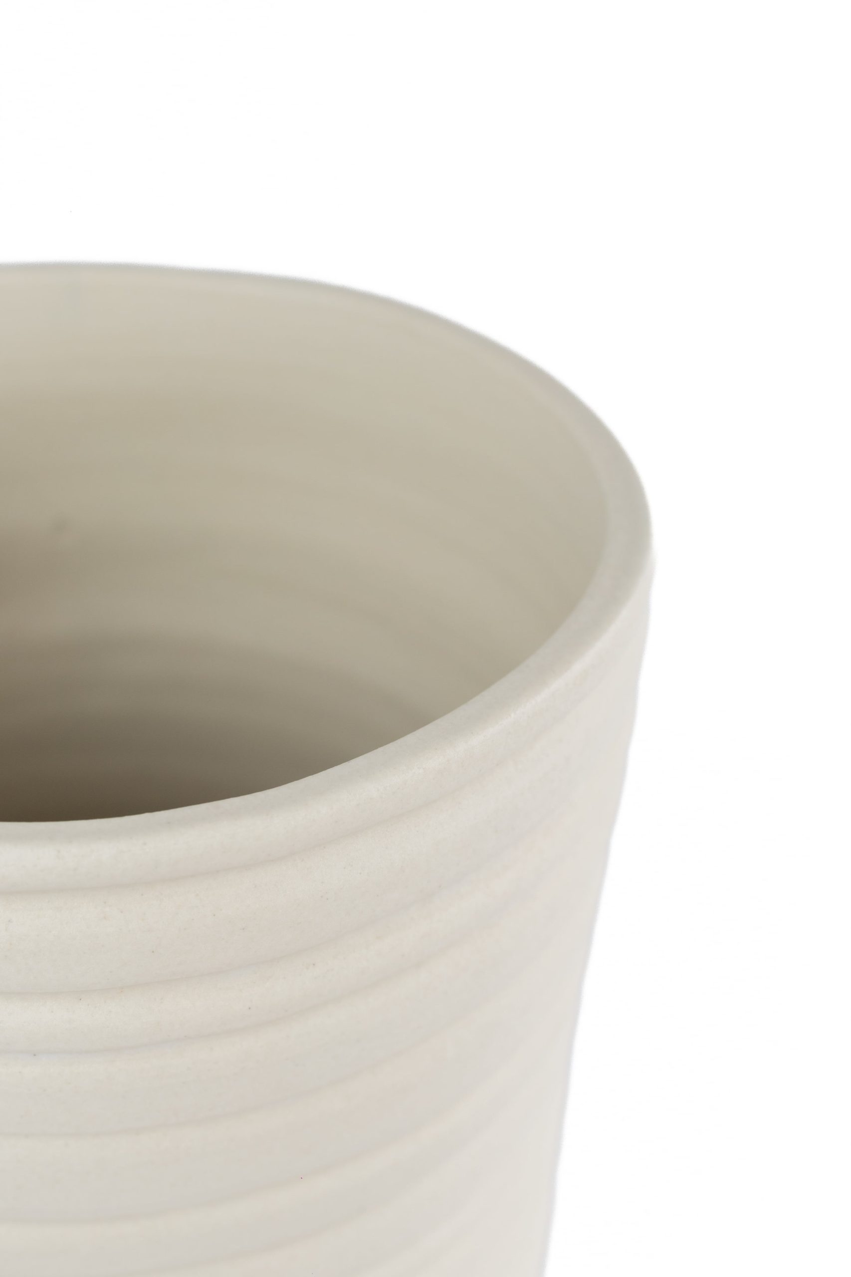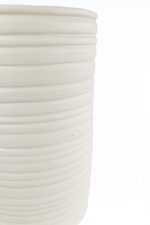 Suas dimensões amplas permitem diversas composições decorativas, seja exibindo flores altas e elegantes, plantas de folhagem densa ou até mesmo arranjos secos que destacam sua beleza escultórica. A neutralidade do branco atua como uma tela em branco, permitindo que a natureza e a criatividade do usuário brilhem.