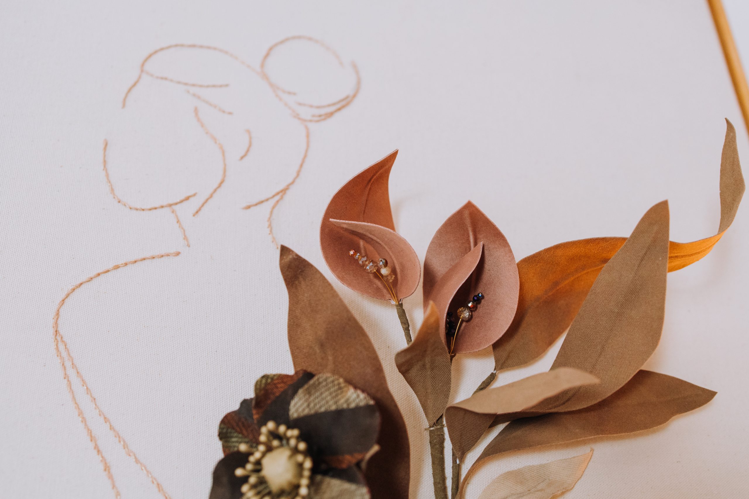 A obra nasce do gesto sensível e do tempo estendido do fazer manual. Cada bordado, cada