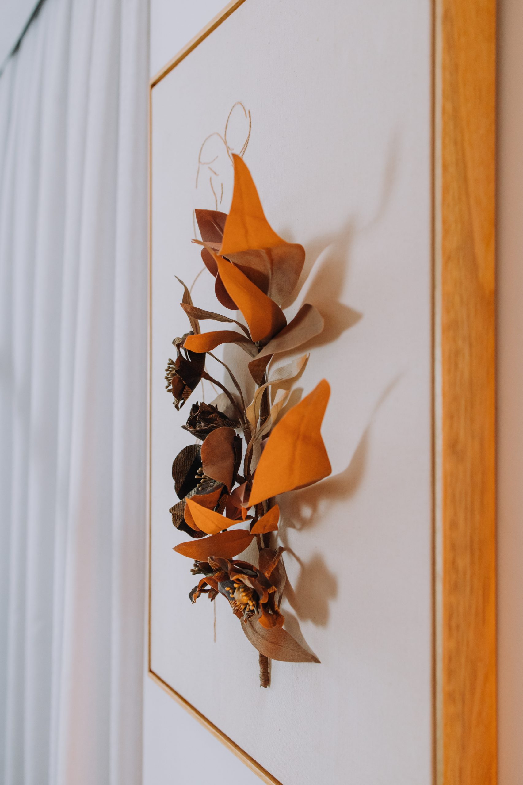 Hoje, seus bordados cintilantes se estendem em telas, pousando em paredes, como se estivessem fazendo pose, encantados com sua própria presença. E até as folhas secas, caídas das árvores, mudam de ideia sob o toque de Marina: vestem-se para a festa, transformadas e renascidas em alto estilo.