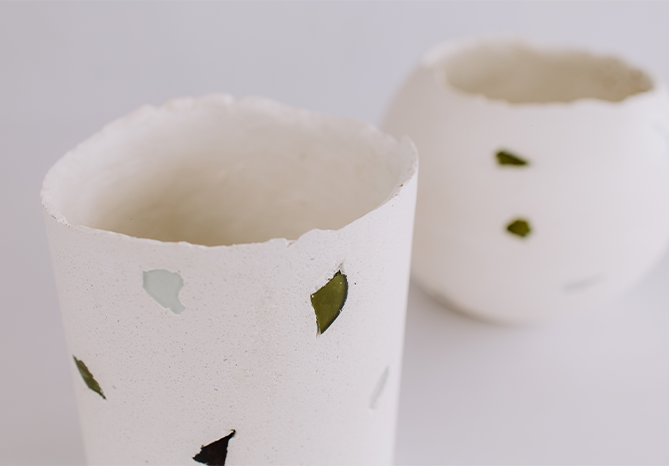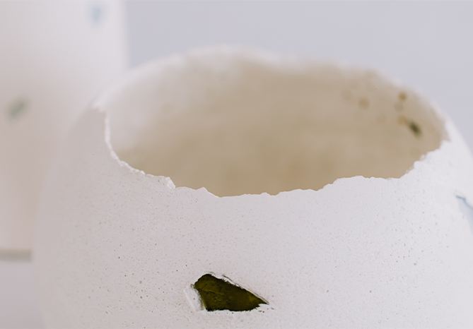 Esta peça é a expressão sublime de uma jornada criativa, onde a busca pelo singular se transforma em arte. Com seu design esférico, ela evoca o Planeta Terra, um símbolo de unidade, integridade e pertencimento. A superfície da peça é pontilhada por fragmentos de vidro, que reluzem como vitrais, capturando e refletindo luz em um espetáculo de cores e nuances.