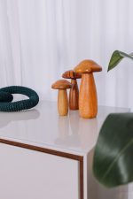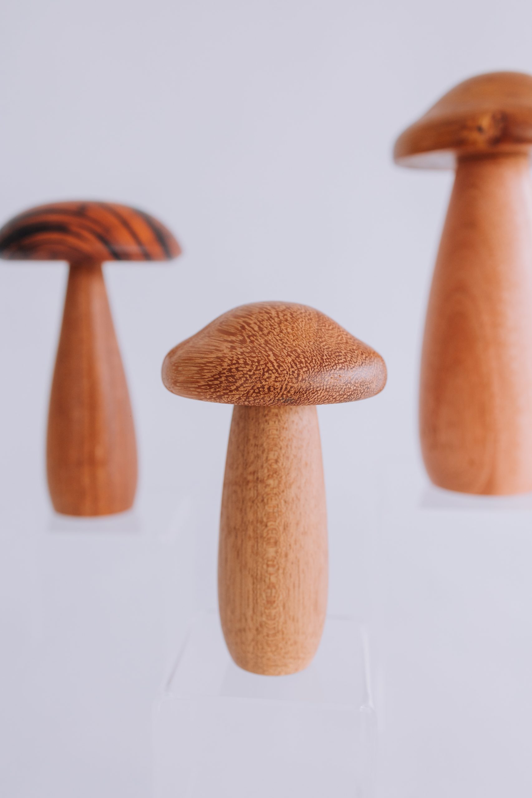 Desde vasos torneados, castiçais e incensários, até luminárias e cogumelos esculpidos à mão; também oferece utensílios variados, como tábuas de corte, bowls e pratos de madeira, cada um com a qualidade e o detalhe que só o trabalho artesanal pode oferecer.
