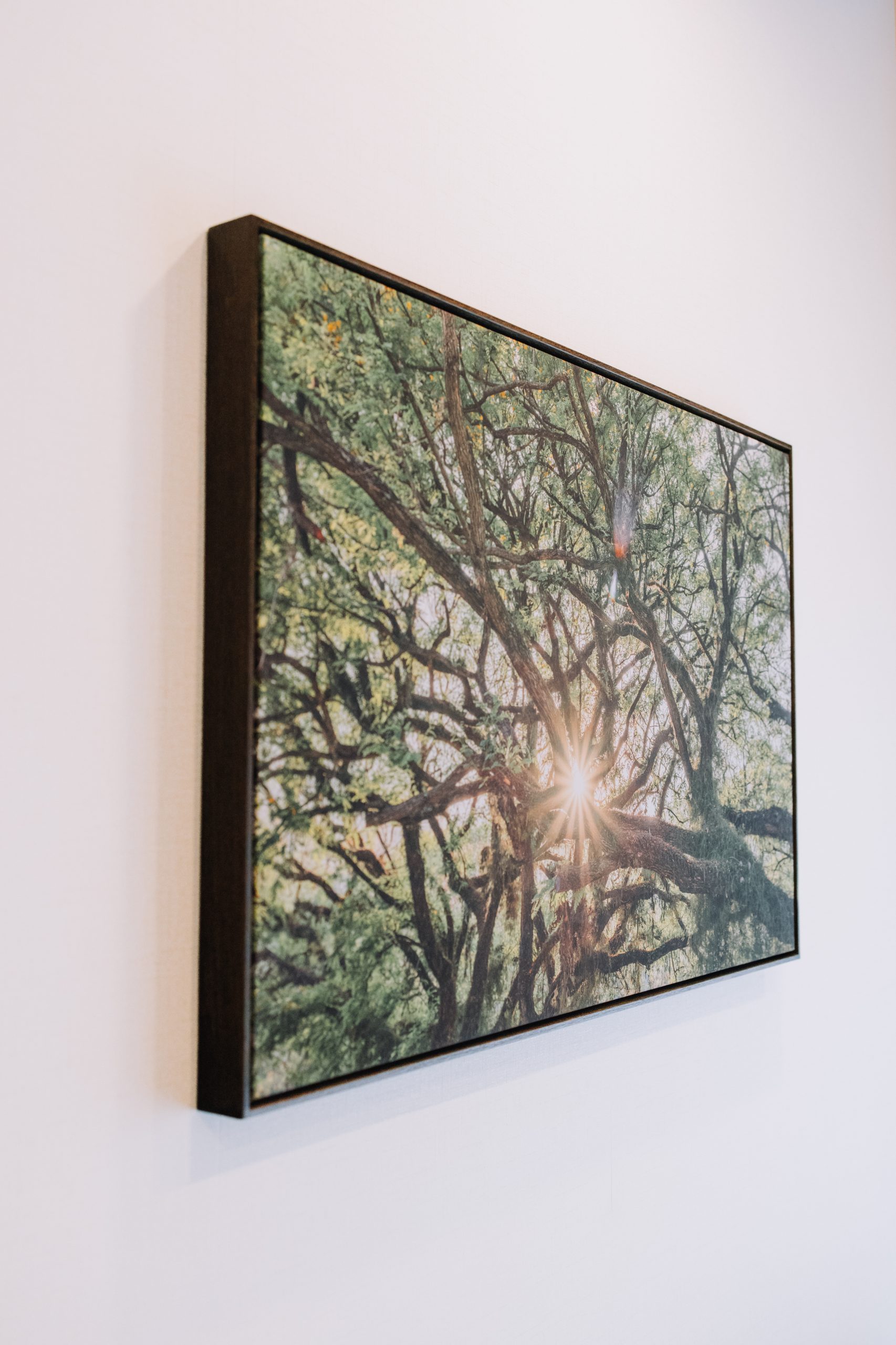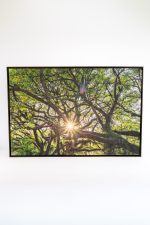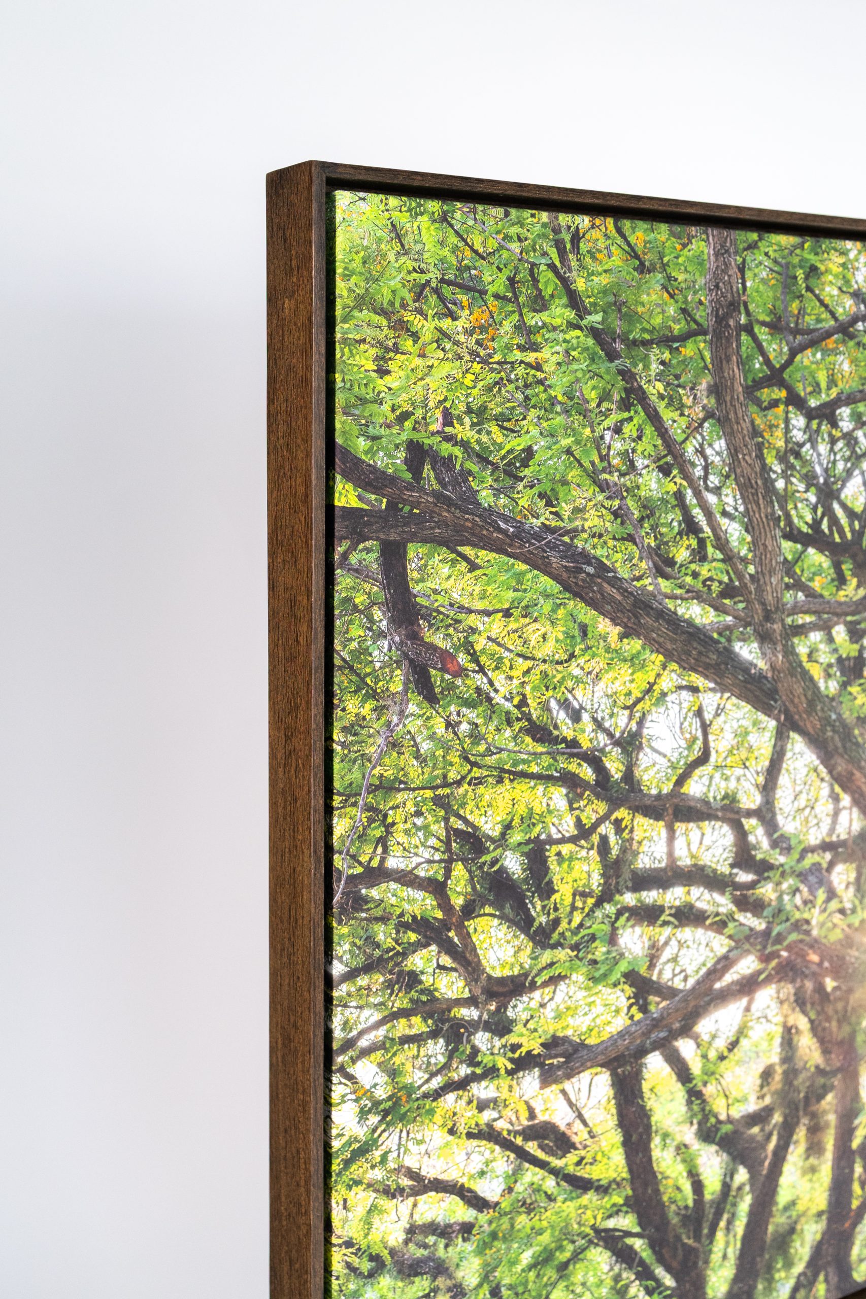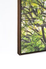 Impressa em Cézanne canvas 100% algodão, com pigmento mineral e moldura em madeira natural folheada de Ipê, essa peça carrega em si o ciclo da renovação. Como o tronco que troca de pele, a floresta nos lembra que a vida é feita de transformações e que há beleza em todas elas.