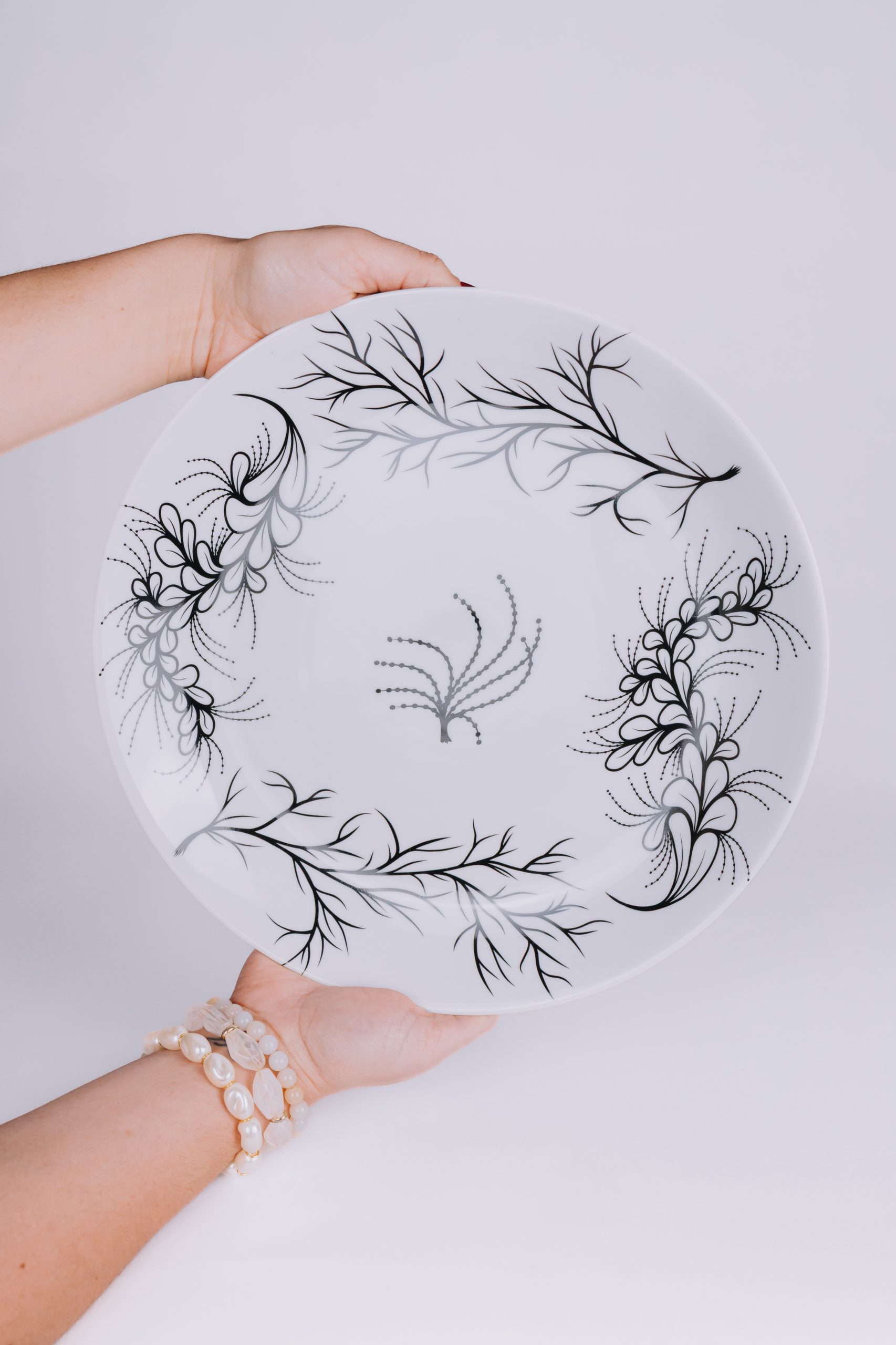 O Prato para Bolo Botânica reúne elegância, funcionalidade e o rigor técnico das queimas em alta temperatura. A peça é de porcelana e apresenta desenhos autorais em nanquim inspirados pela observação da natureza. O conjunto Botânica foi produzido para ser usado no cotidiano sem perder o refinamento do acabamento, o equilíbrio das formas e a precisão das ilustrações.