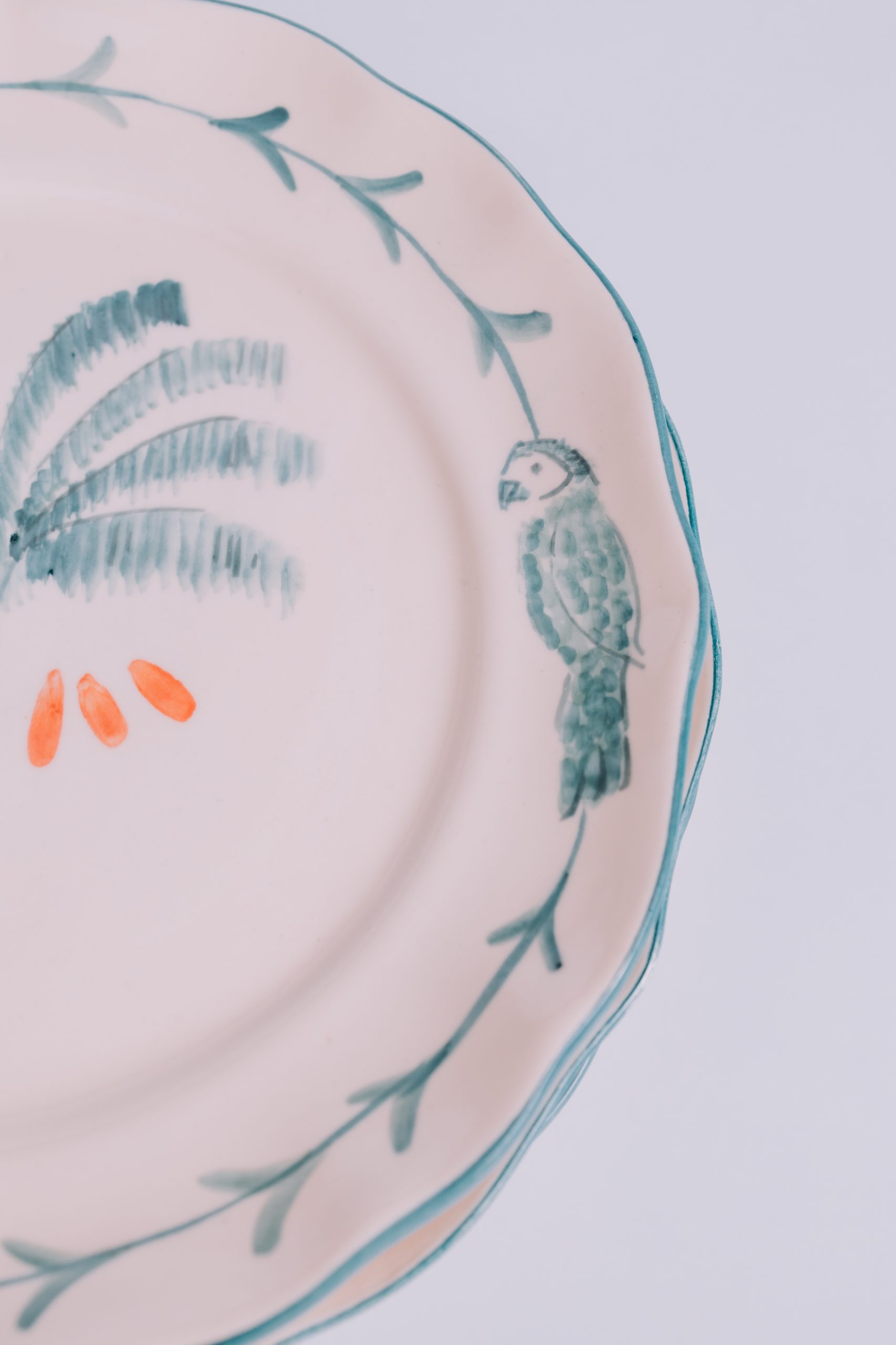 O Prato de sobremesa Imperial traduz sofisticação em cada detalhe. Ele se destaca pelos tons de verde profundo, que evocam a imponência das palmeiras imperiais, símbolo de força, elegância e atemporalidade.