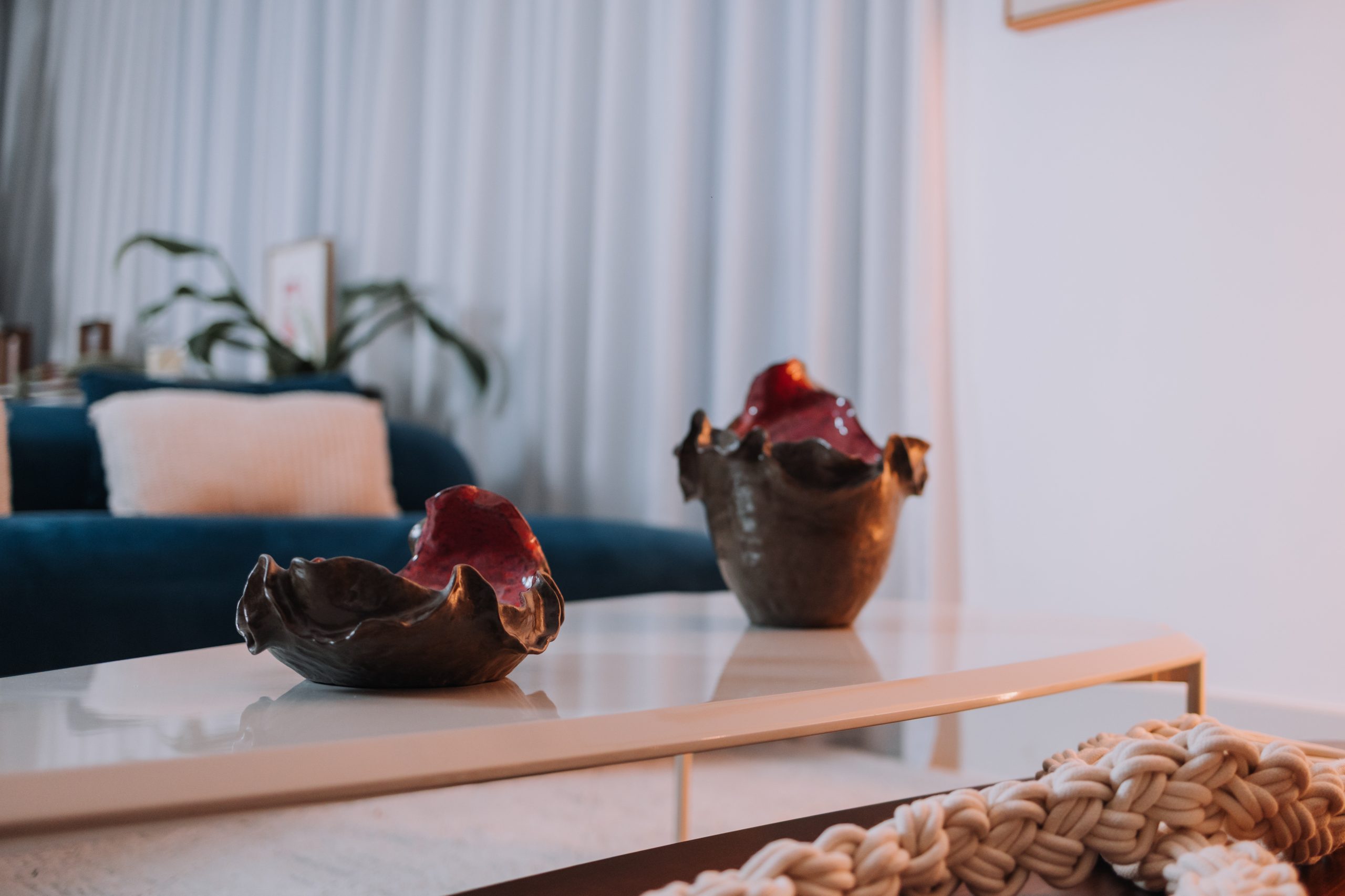 O Conjunto Ravel Baixos Ecos é uma escultura em cerâmica construída manualmente pela técnica do belisco, um processo ancestral que valoriza o toque e o ritmo do gesto.